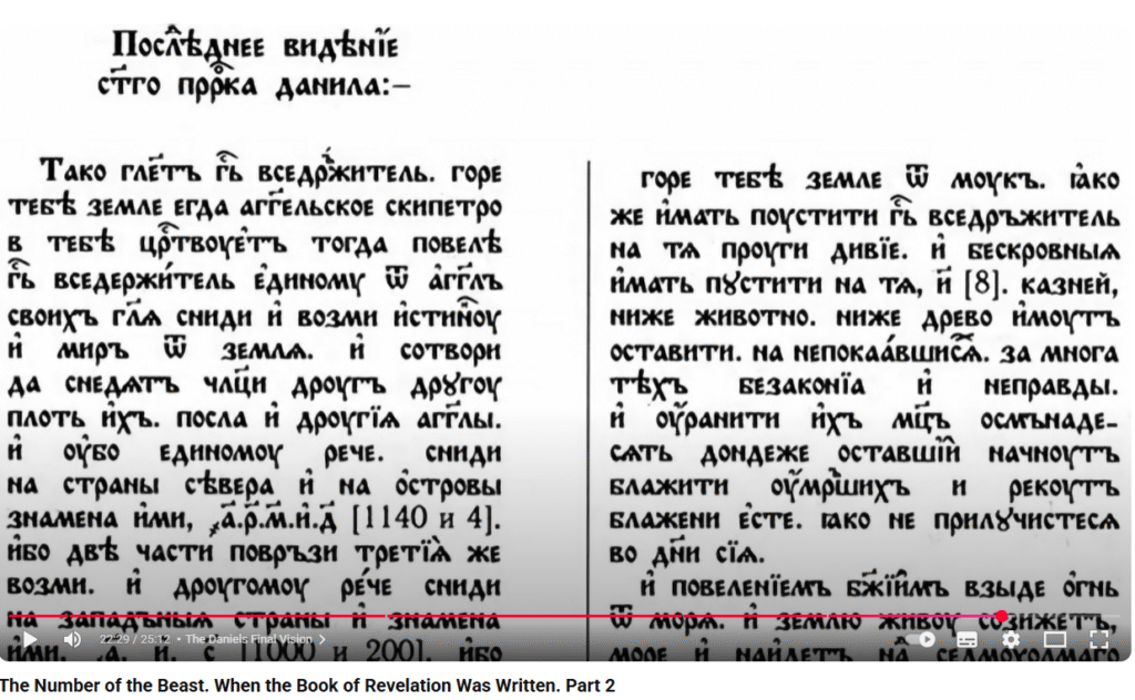 The following excerpt from The Daniel’s Final Vision is quoted from a Church Slavonic manuscript held in the manuscript department of the Russian State Library.